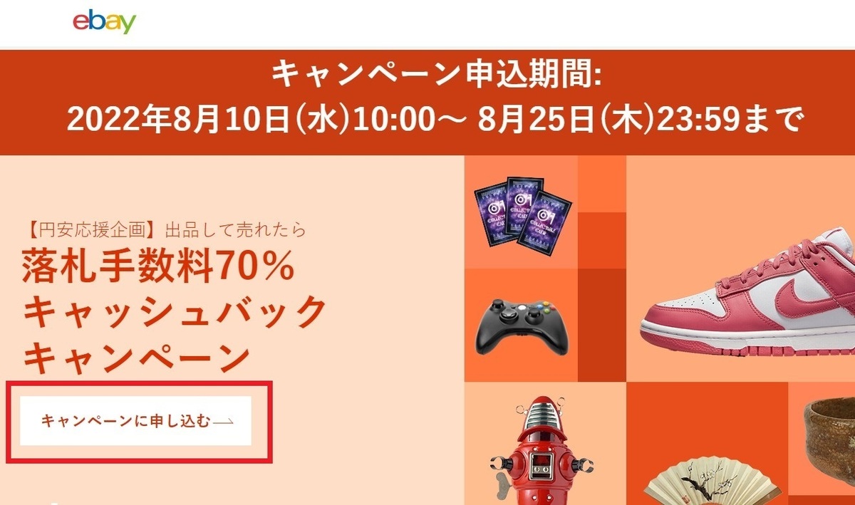 イーベイジャパンより、落札手数料70%キャッシュバックキャンペーンが告知されました。