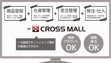 【CROSS MALL(クロスモール)】EC運営の一元管理クラウドサービス CROSS MALLは商品登録・在庫管理・受注管理・発注・仕入れといった、ネットショップを運営するのに必要な業務をすべて一元管理できるASPソフトです。複数のネットショップの運営に必要な業務を効率化して、より最適な店舗運営を可能にします。変化の速いEC業界において多店舗運営するとき、特に注意したいの